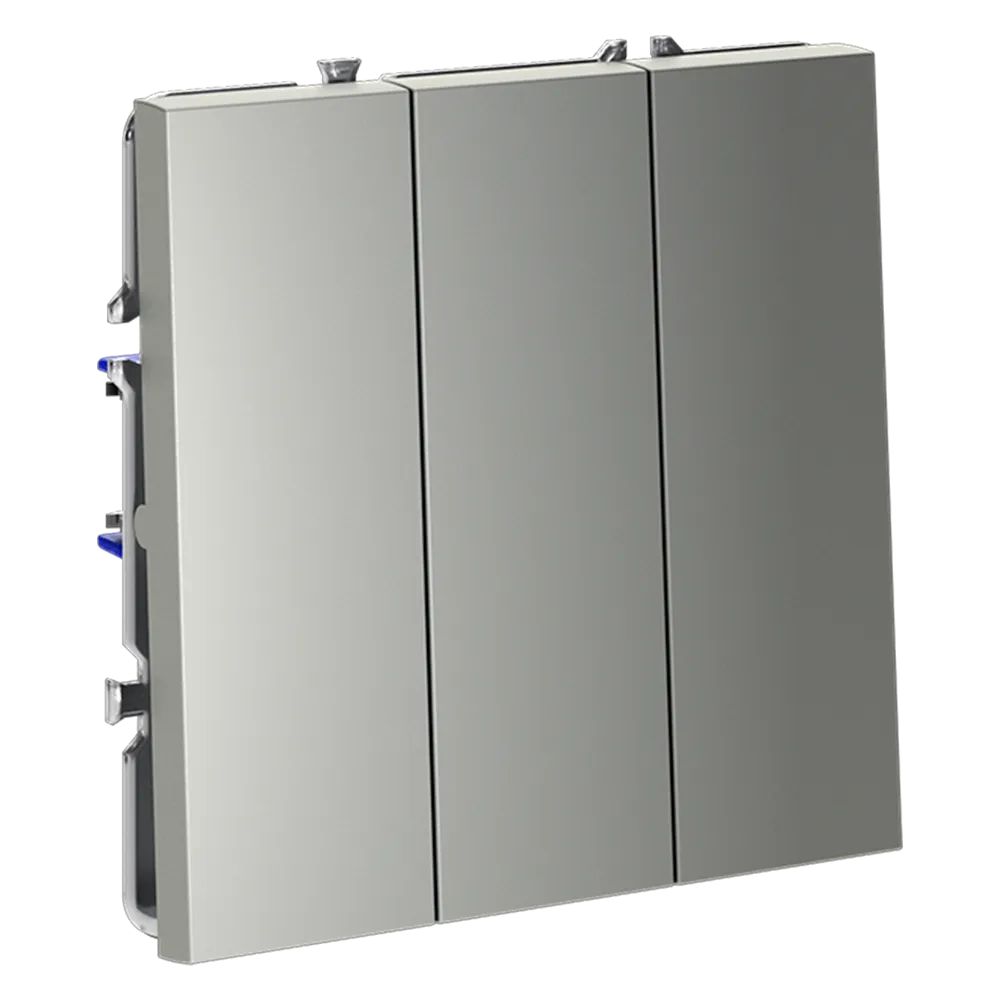 Трехклавишный выключатель VOLTUM S70 в цвете «сталь» — это элегантное и функциональное решение для управления тремя независимыми световыми зонами из одной точки. Идеально подходит для гостиных, спален, кухонь и прихожих, где требуется раздельное включение основного, декоративного и акцентного освещения.
