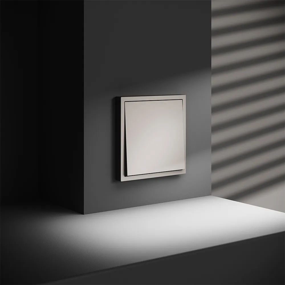 Выключатель полностью совместим с пластиковыми и стеклянными рамками той же серии и гармонично вписывается в любую композицию из розеток, выключателей и других устройств VOLTUM S70.