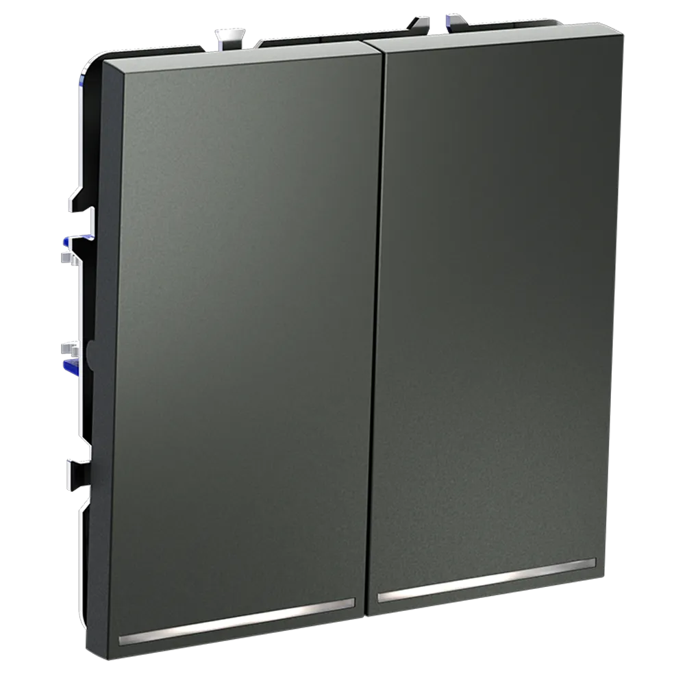 Каждая из двух клавиш работает как независимый проходной переключатель, позволяя управлять двумя световыми контурами (например, основным освещением и подсветкой) параллельно из разных мест. Это исключает необходимость возвращаться к первому выключателю и значительно повышает комфорт повседневного использования.