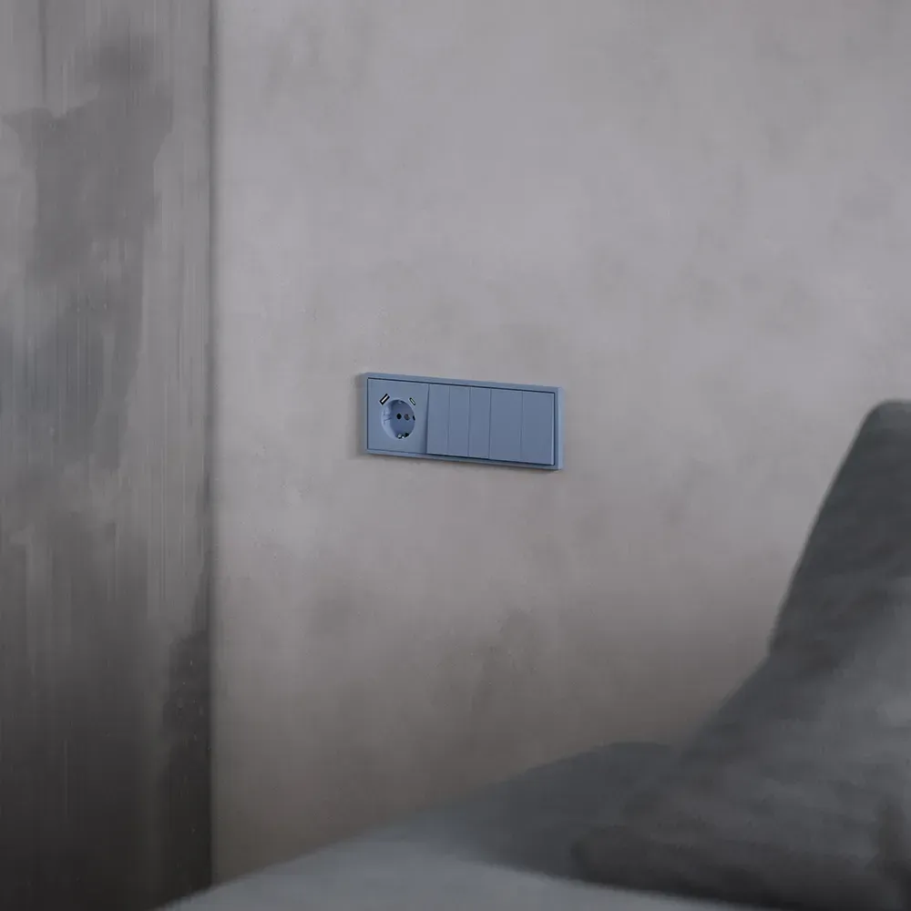 Двухклавишный проходной переключатель VOLTUM S70 в цвете «деним» — это продвинутое решение для независимого управления двумя группами освещения из двух и более точек. Идеально подходит для просторных гостиных, спален с отдельной зоной отдыха, офисов и многоуровневых помещений, где требуется гибкость и удобство управления светом — например, у входа и у изголовья кровати.